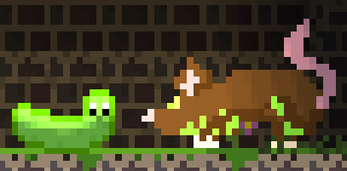 The game is constructed using pixel graphics due to them being easier than most art styles. We also thought that pixel graphics were the most suitable for the type of game that we sought. The playable character is a cucumber inspired by Rick and Mortyβs βPickle Rickβ episode. The game is set in a dystopian overgrown sewerage where flora has been let to thrive without human interaction. In addition to flora, there are signs of human remnants such as cans or graffiti.